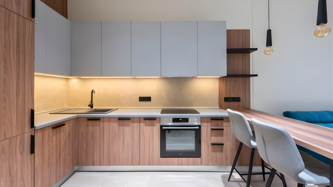 Flat-pack boxes go far when you add solid hardware, soft-close hinges, and a toe-kick that actually meets the floor. Paint doors a house color, line up reveals, and add a simple valance or side panel so the run looks built. Function first, then finish.