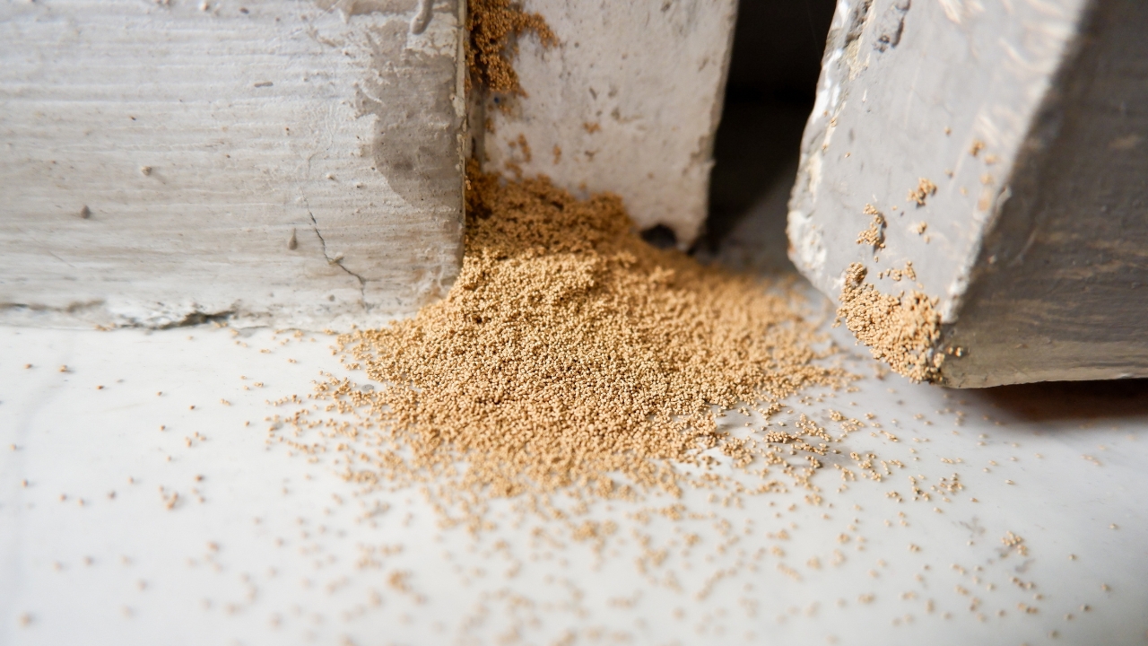 If you’re spotting tiny piles of sawdust near baseboards, windows, or wall seams, ants might be tunneling behind the wall.