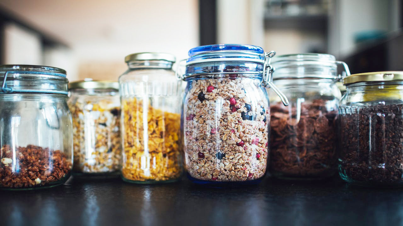 You don’t have to decant every grain you own. Just pick the three to five things you use constantly—like flour, sugar, oats, rice, or coffee—and move them into clear jars with lids. Line them up on a shelf or tucked into a corner of the counter.