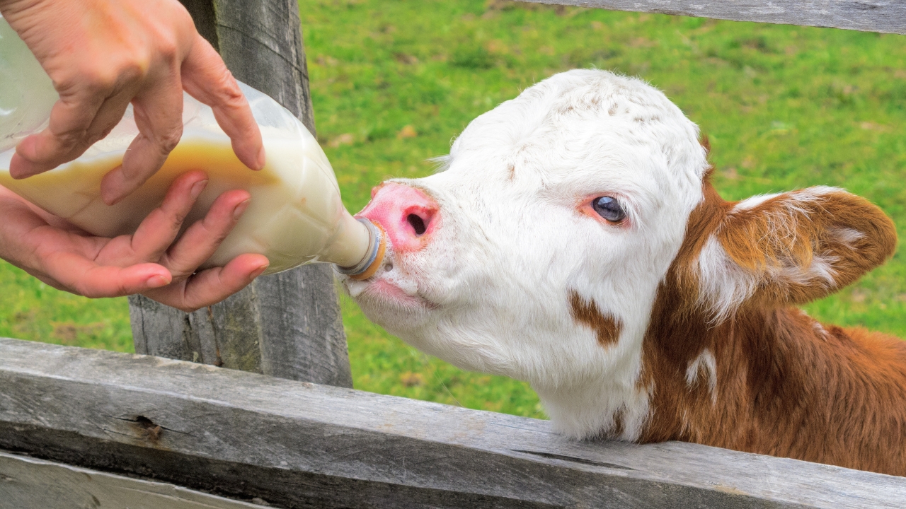 Sanitize the bottle before use and warm the milk to 101-102°F (body temperature). Feed the calf in an upright position, not lying down, to prevent aspiration. While this isn’t a permanent solution, it can get you through in an emergency.