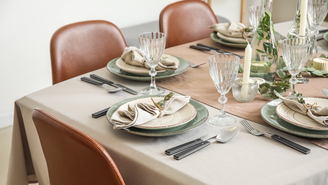Matching plates, glasses, and flatware—even affordable ones—create a “restaurant” feel at home. Guests don’t think about the price tag; they just notice everything ties together, which makes dinner feel more elevated.