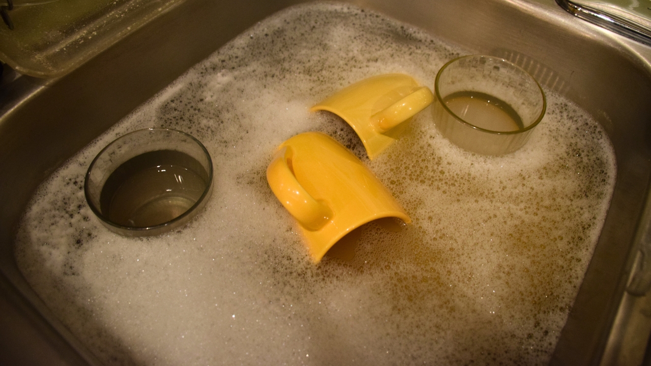 If you can’t wash something right away, at least rinse it thoroughly. Don’t leave full sinks overnight unless you want to risk roaches treating it like their own private soup kitchen.