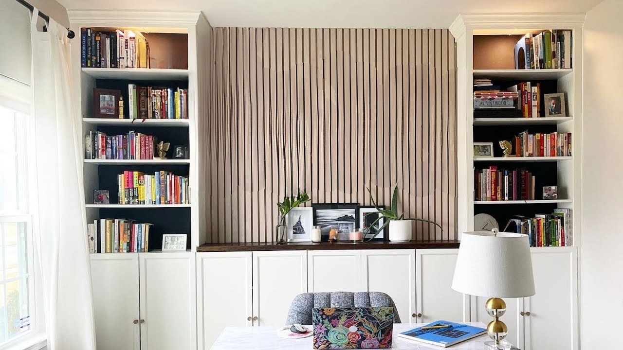 Stock shelving units can be turned into “built-ins” with a little trim and paint. IKEA’s BILLY series is famous for this hack.