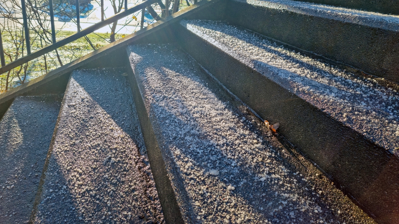 Ice melt or sand for slick steps and walkways