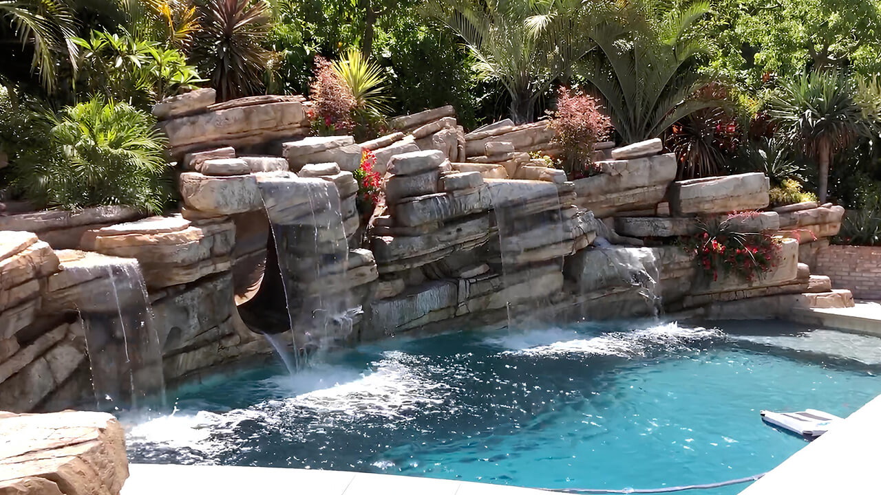 A pool is already a luxury, but adding a rock waterfall or built-in fountain takes it further.