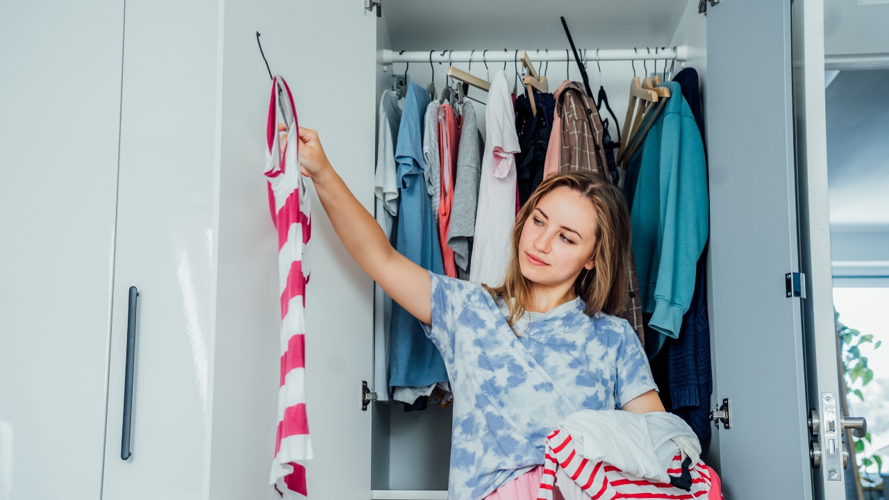 Closets get out of control fast. You don’t need a full Marie Kondo session either—just spend 20 minutes pulling out anything you don’t wear or use. Bag it up for donation or trash and call it good.