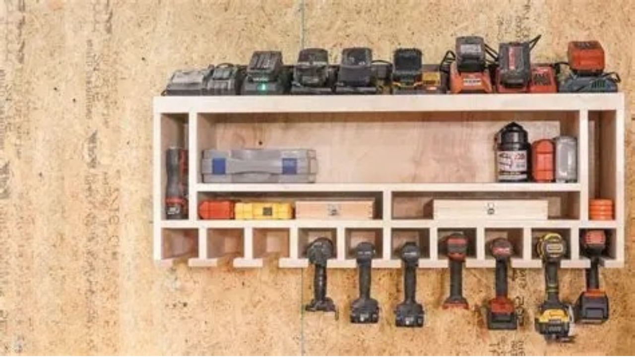 Now everything charges on a wall-mounted board with cord wraps and enough outlets to keep it organized. No more bent prongs, missing chargers, or tools that fail because the battery never actually got juice.