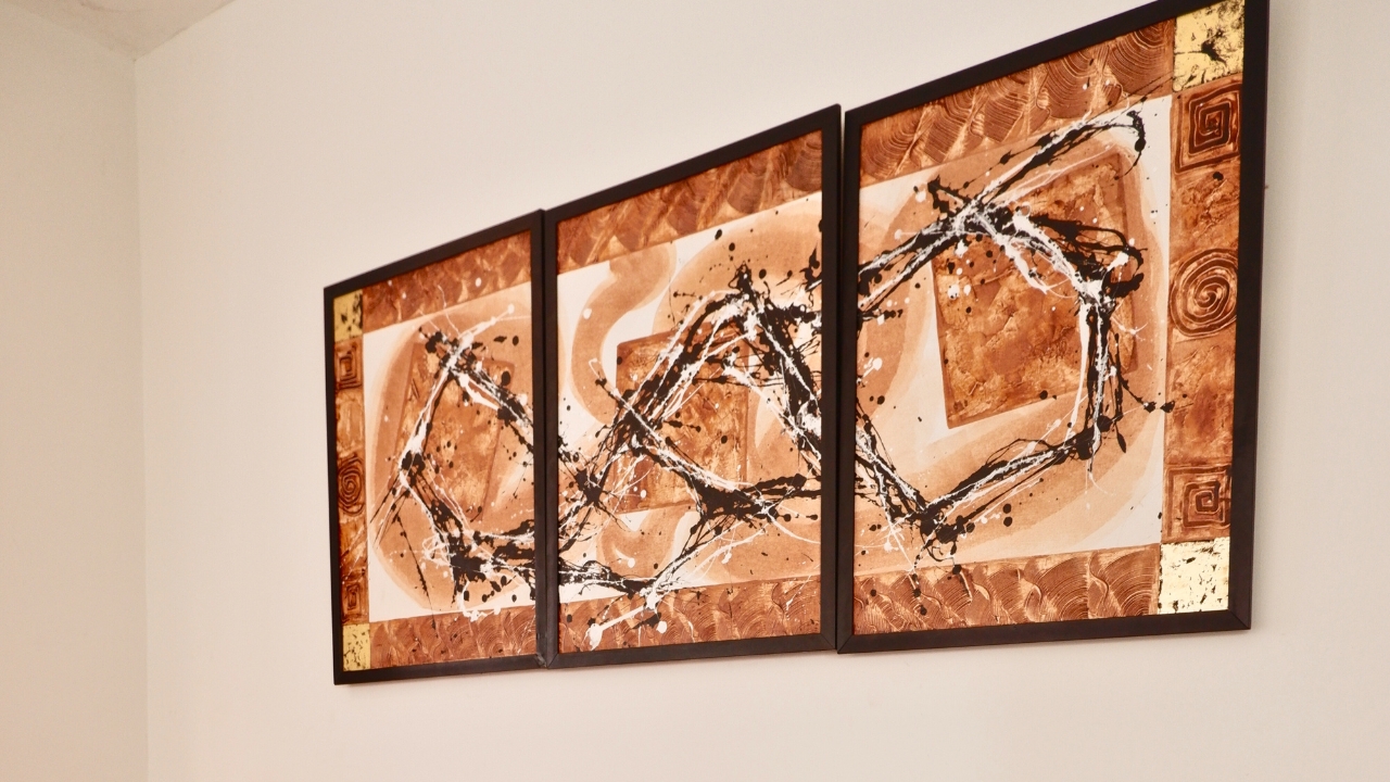 Triptychs with generic prints are an instant tell. Go larger and fewer: one statement piece or a collected gallery with matching frames. Hang at eye level and center over furniture so the wall reads finished.