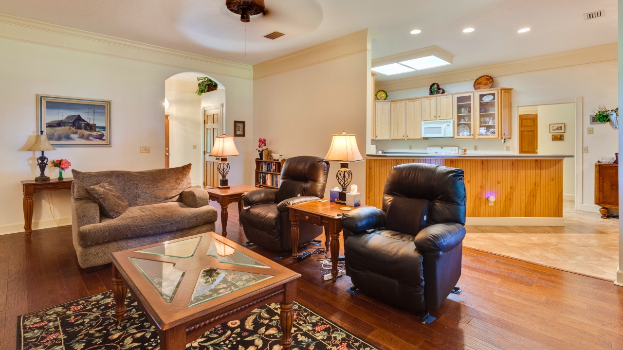 A sofa, chair, coffee table, and media cabinet from the same collection reads catalog, not curated. Mix silhouettes and finishes so it looks like you chose pieces over time. Keep one throughline—wood tone, metal finish, or leg shape—so the room still feels related.