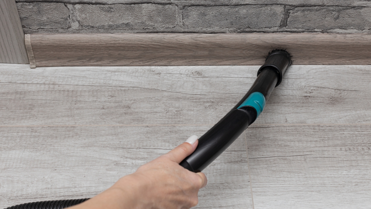 Spiders love undisturbed areas, especially along the edges of floors and behind furniture. Running a vacuum through those spots regularly can help clear out webs, egg sacs, and the tiny bugs they feed on.