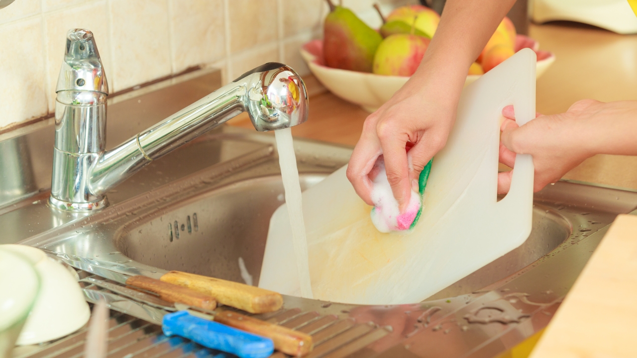 You might think plastic boards are tough enough to handle a scrub pad, but the grooves left behind by aggressive cleaning can trap bacteria and make them even harder to sanitize later.
