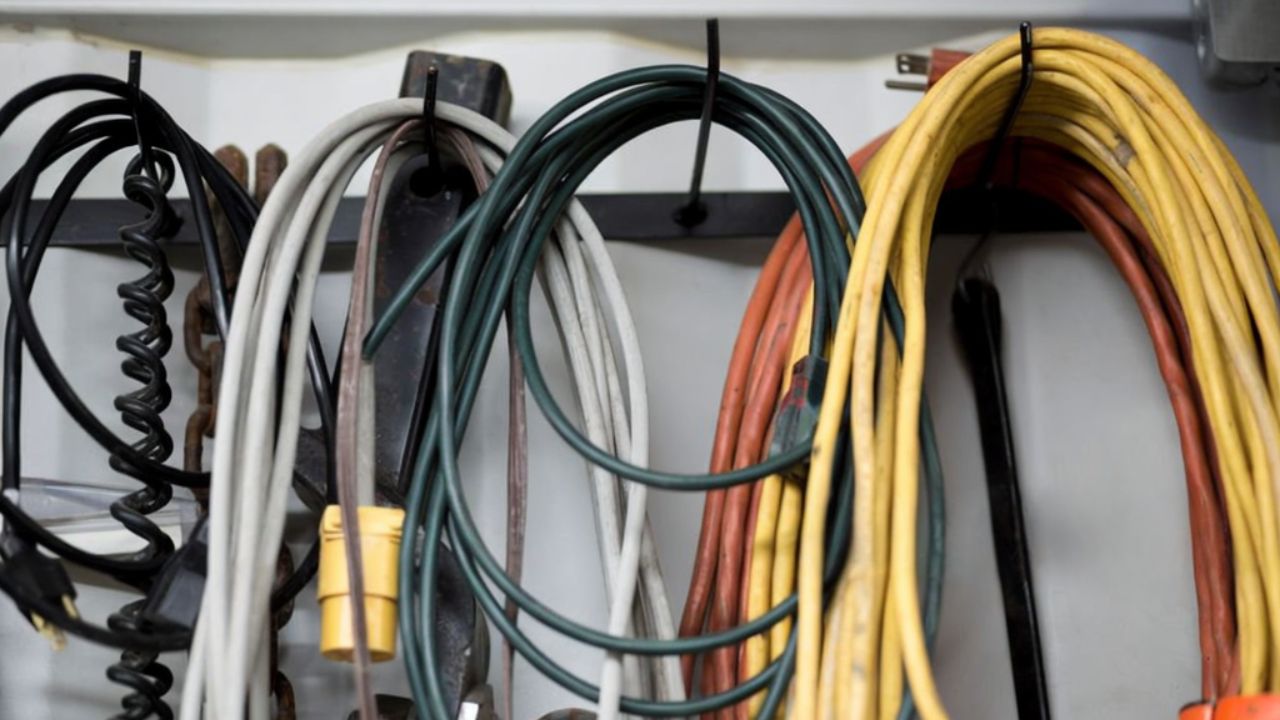 Tight coils set memory and crack vinyl in the cold. Use wide hooks and 18–24″ diameter loops for extension cords and air hoses.