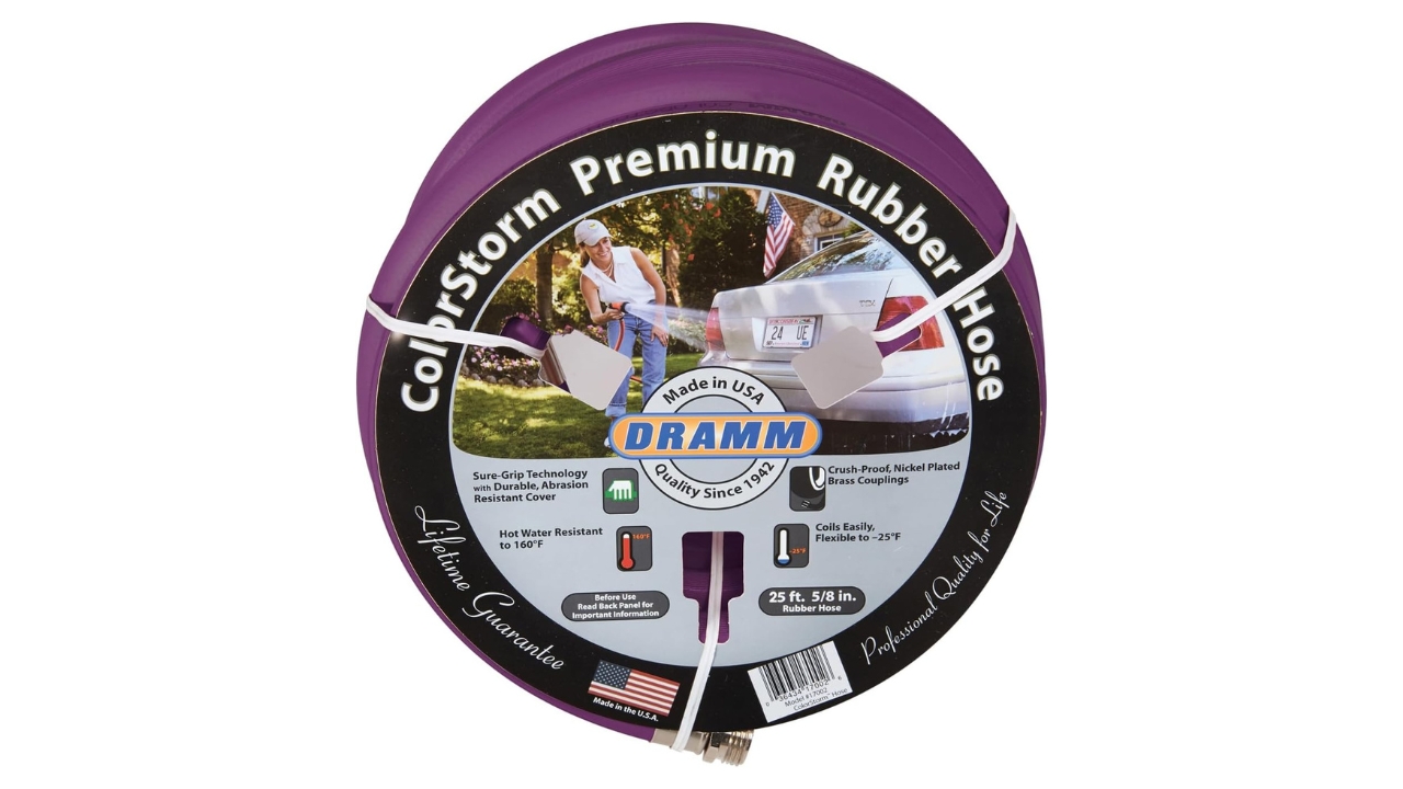 Gardeners who test equipment for HGTV often point to this hose as the standard for durability. It’s made from heavy-duty rubber that resists kinking and cracking, even in extreme weather. Nickel-plated brass fittings prevent leaks, and the bright color options make it easy to spot in tall grass. It’s also made in the U.S., which adds to its reputation for quality.
