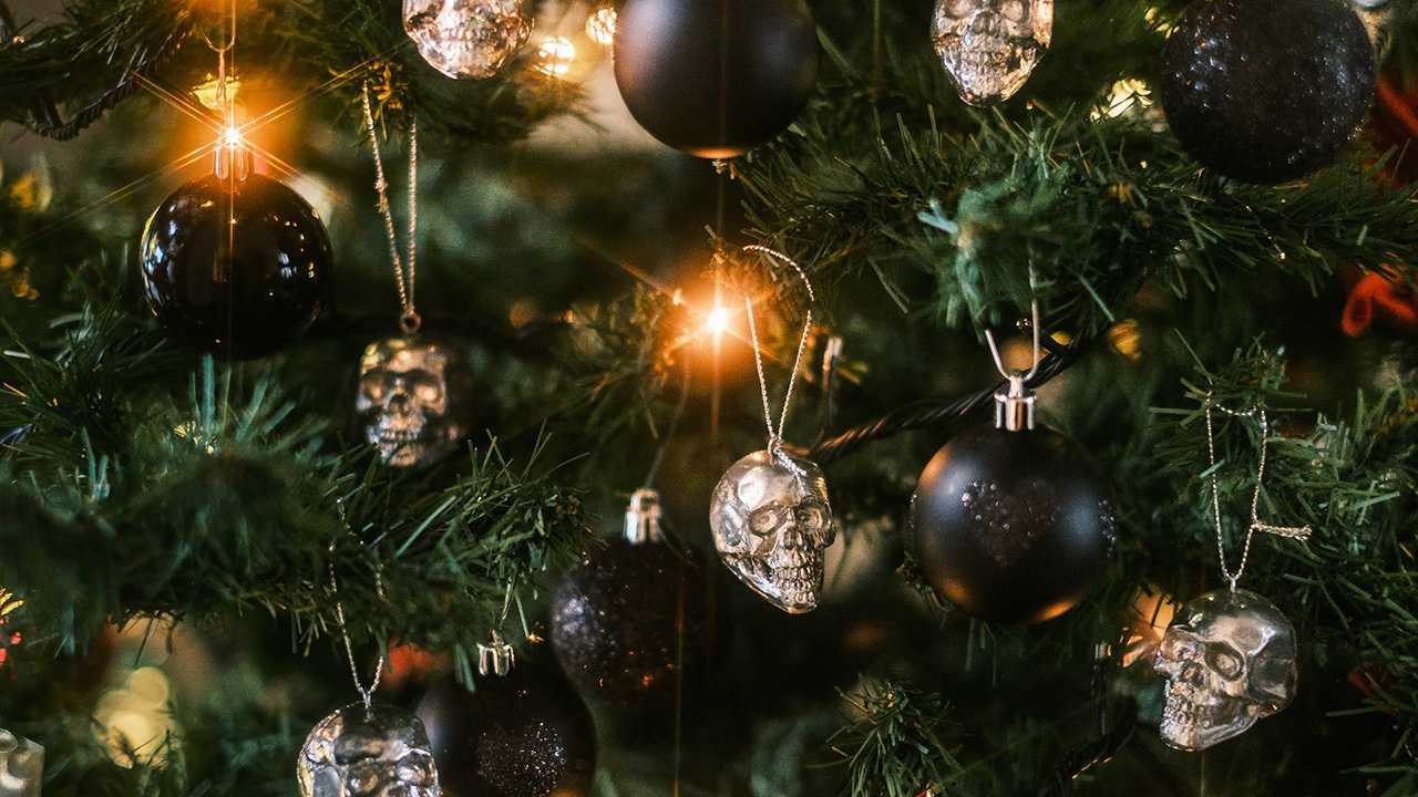 Gothmas is the darker, moodier side of Christmas—black ribbons, pewter candles, dark florals, celestial details, and deep jewel tones mixed with metallics. This works really well in one room: black candleholders with dark green garland, plum or navy ornaments with gold ribbon, or a “night sky” mantle with stars and taper candles. It’s dramatic without being cartoonish if you keep the palette tight.