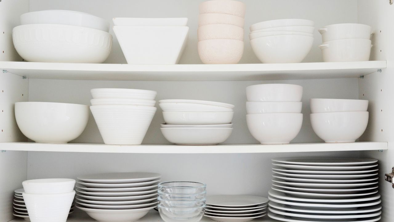 If you’re storing dishes you never use, either start pulling them out for Sunday dinners and holidays, or let go of the extra sets. A small collection you actually enjoy beats a full cabinet you’re scared to touch.