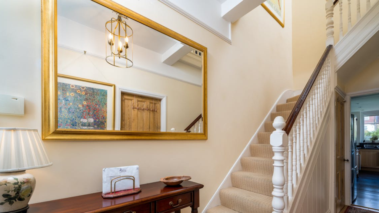 Warm light softens the space and makes it feel more inviting when you walk in at night. Even a $30 table lamp on a console can make a big visual impact.