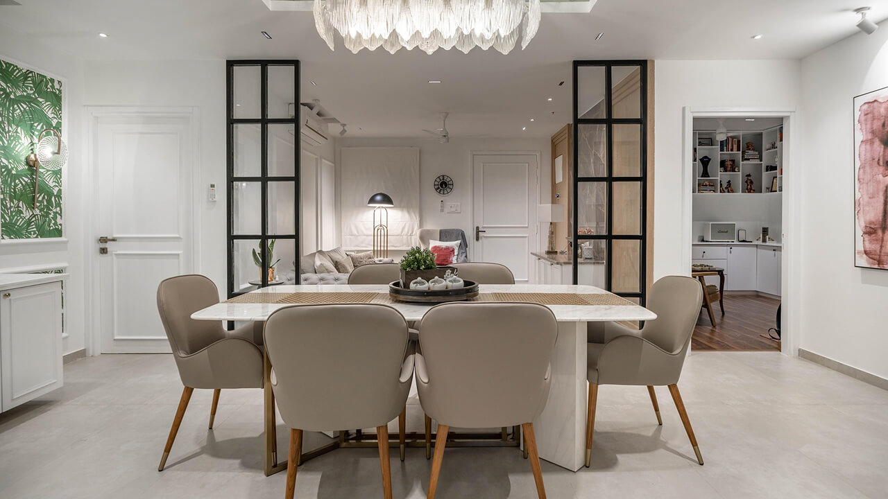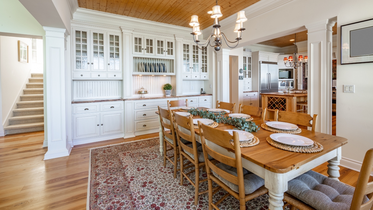 High-end spaces are styled, not cluttered. Leaving your dining table cleared off—except for one centered piece—makes the room feel intentional and fresh. It also signals that the room is ready to use, not a catch-all.