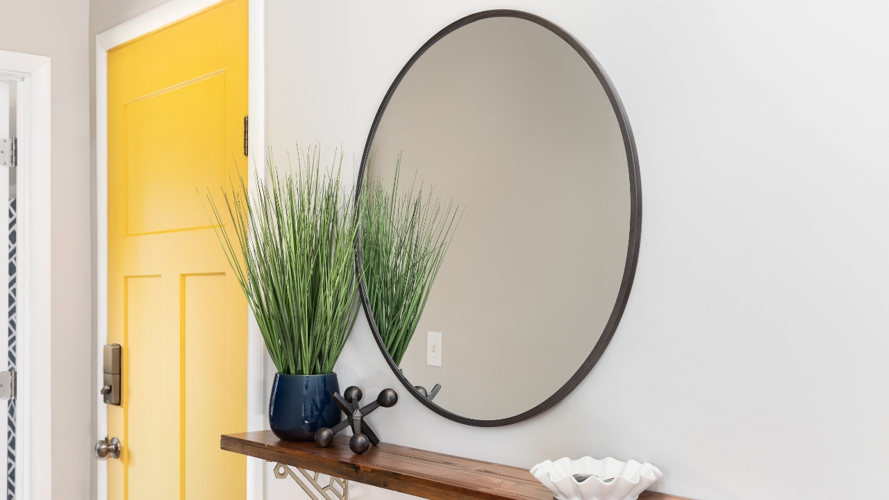 If you have a lot of straight lines, add one large round mirror in the hallway. It’s a bridge piece.