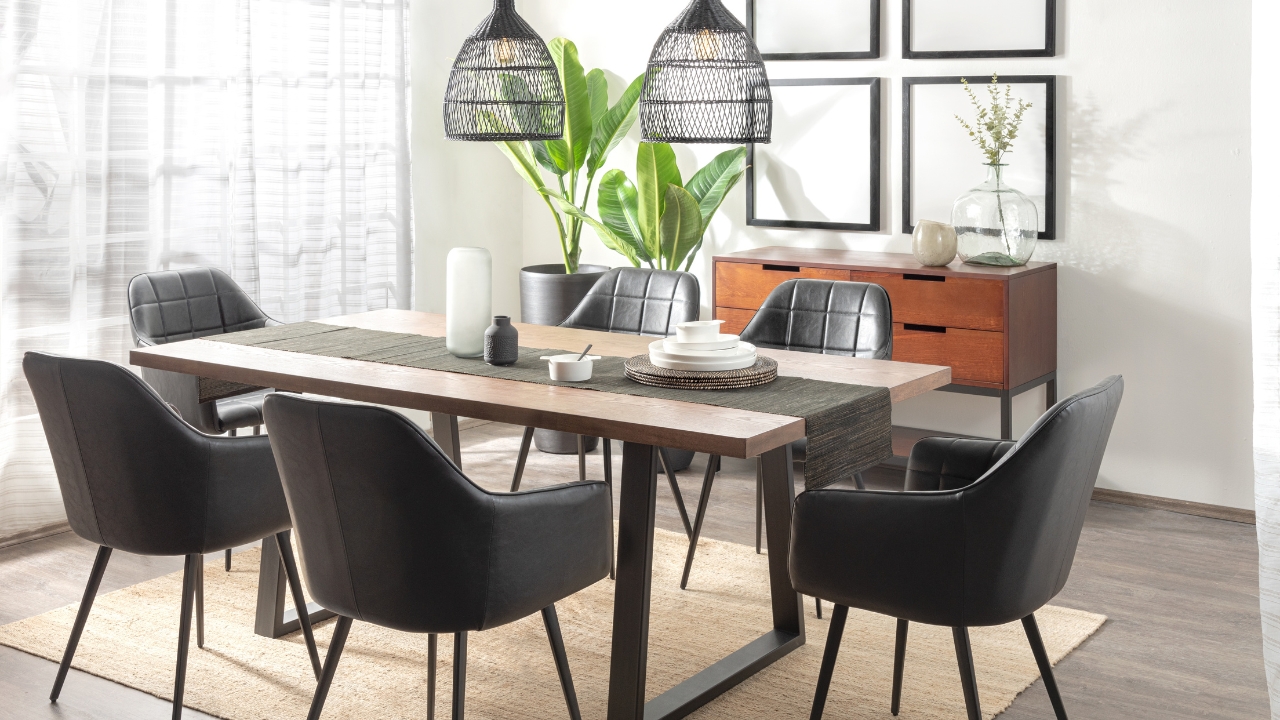 Mirrors give the illusion of more space and create balance in a smaller room. Choose a wood or black metal frame to match your furniture. It’s a simple trick designers use all the time to elevate dining spaces.