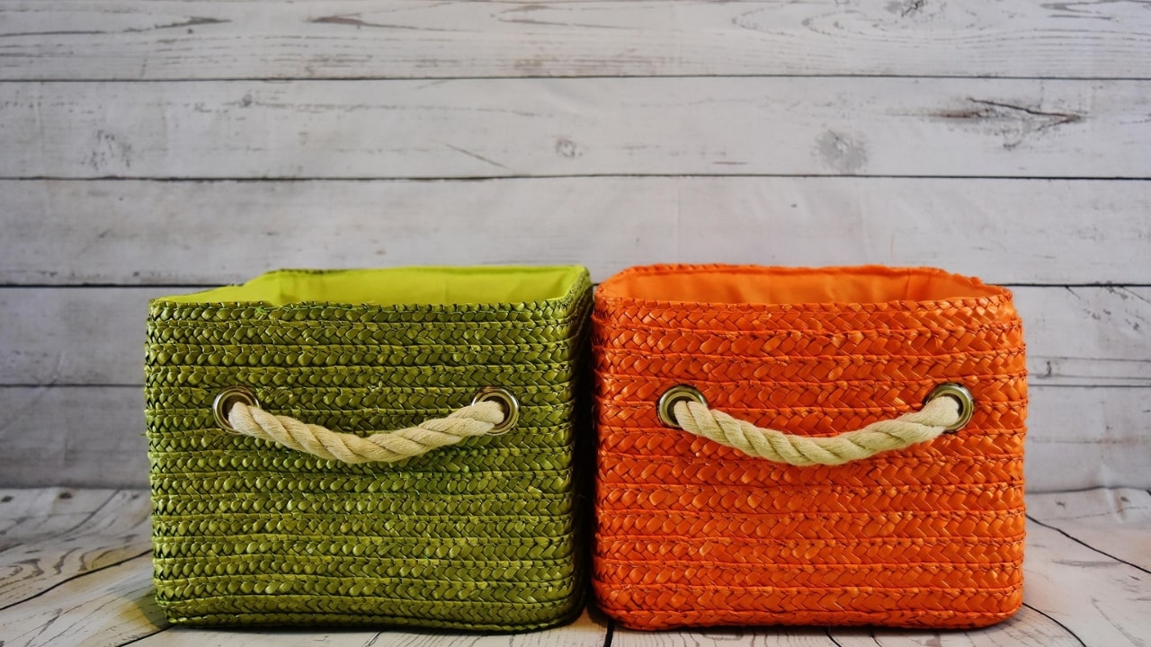 Woven or metal baskets from Dollar General work well for storing blankets, magazines, or even small plants. They’re versatile and affordable, often under $10.
