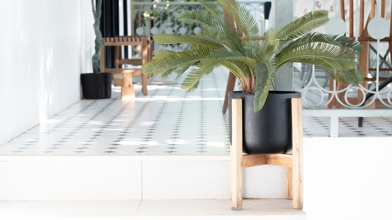 Elevating plants adds depth and style to your porch layout. Dollar General sells small stands or risers that help vary the height of your greenery.