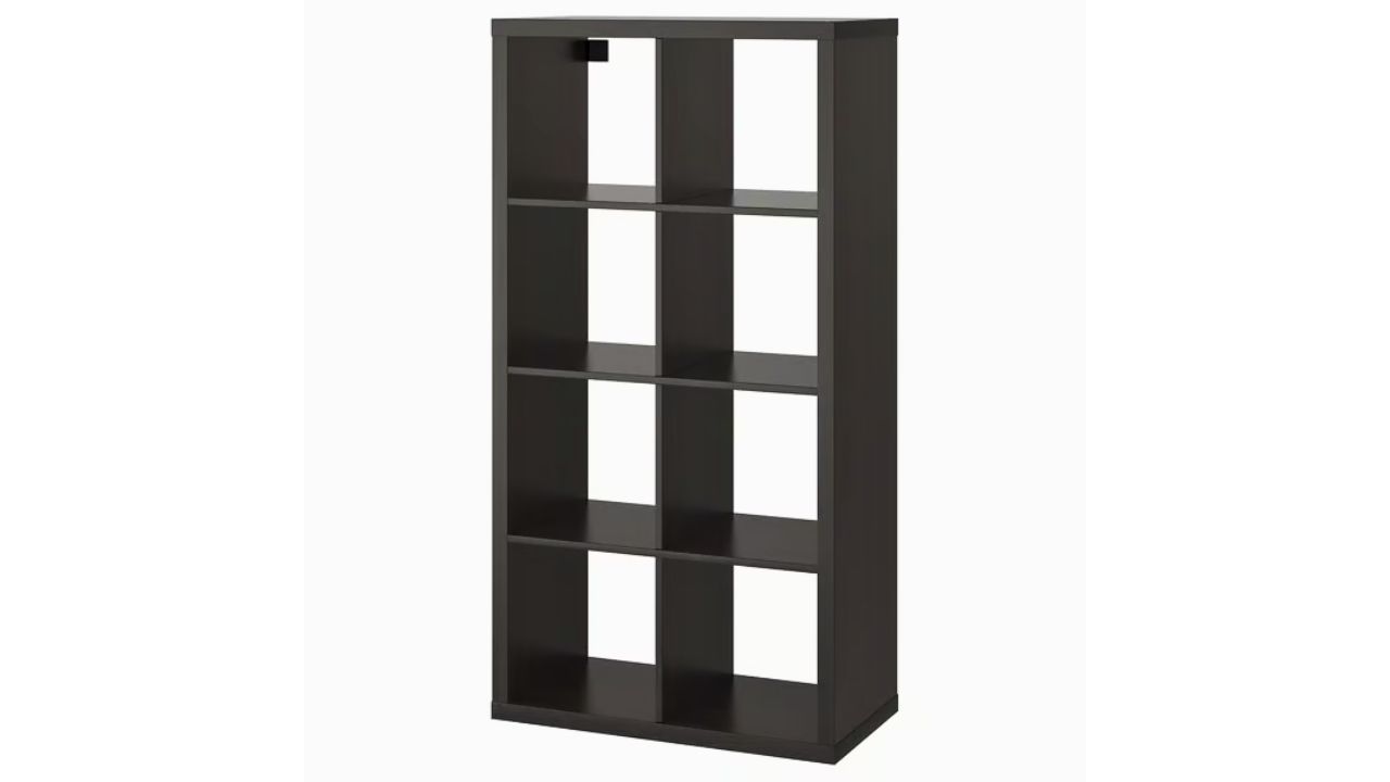 A 2×4 KALLAX on its side with a finished top becomes an instant folding bar and storage base. Add KALLAX door inserts or baskets to hide visual clutter.