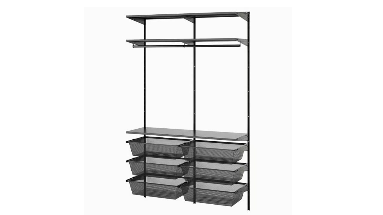 Because it’s open, you’ll naturally keep only what you use. Add a couple of the wire baskets for lost-sock purgatory and delicates that need to air without becoming clutter.
