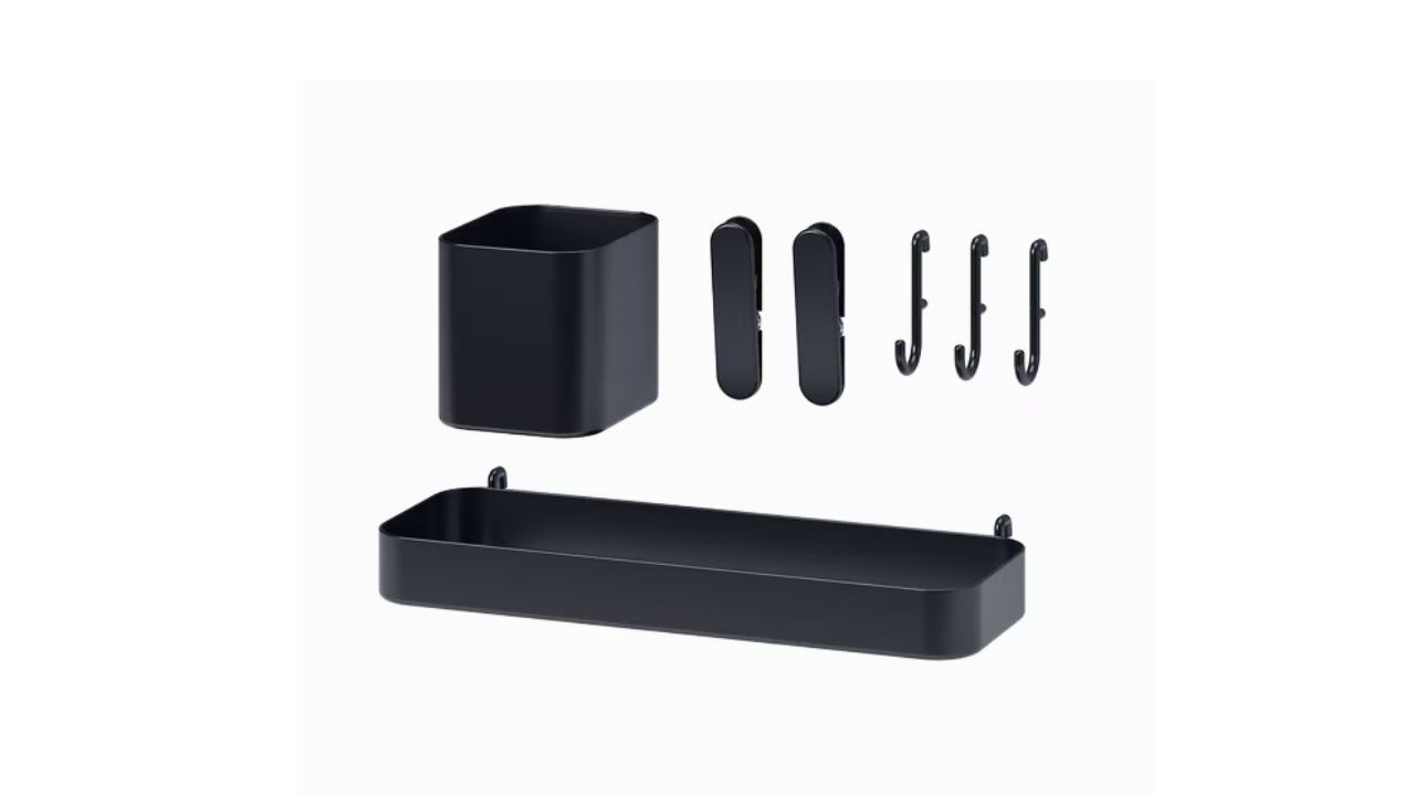 BOAXEL rails let you float shelves, baskets, and drying rails without a full cabinet run. It’s perfect above a washer and dryer where doors would bang. Start with two uprights, a couple of shelves for detergents, and a hanging rod for drip-dry.
