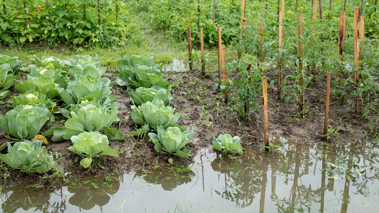 Plant in raised beds or mounds if you’ve got low ground. Most garden crops hate soggy feet.