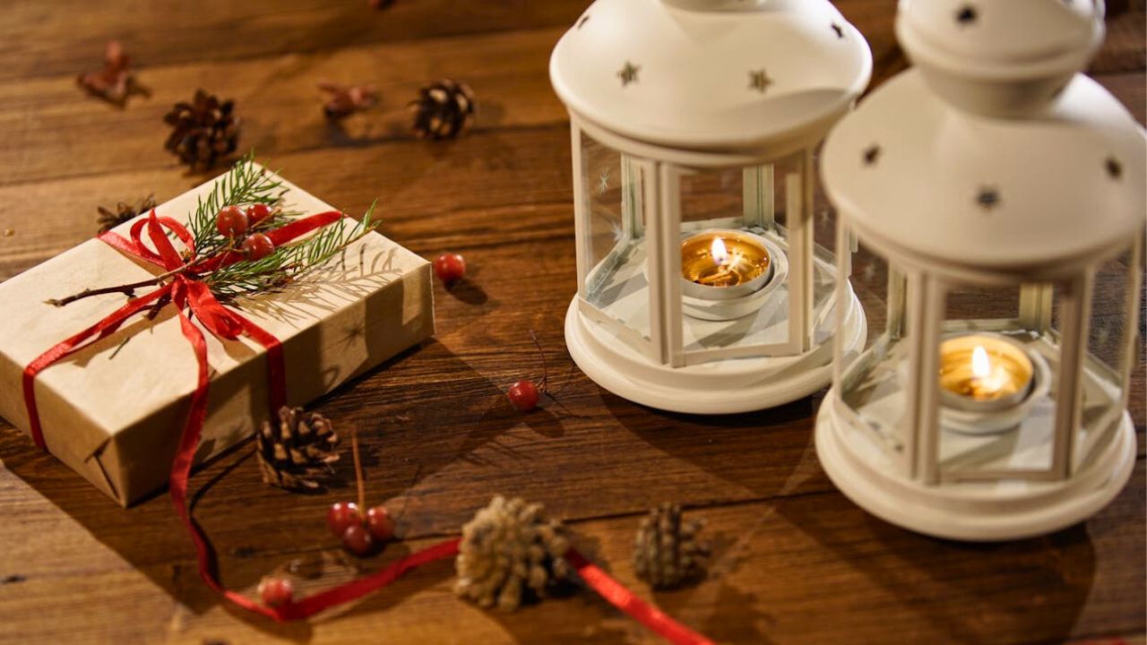 No room for a mini tree? A pair of tall lanterns flanking the door gives you height and a focal point. Fill the base with pinecones or leftover ornaments to make them feel full in daylight.