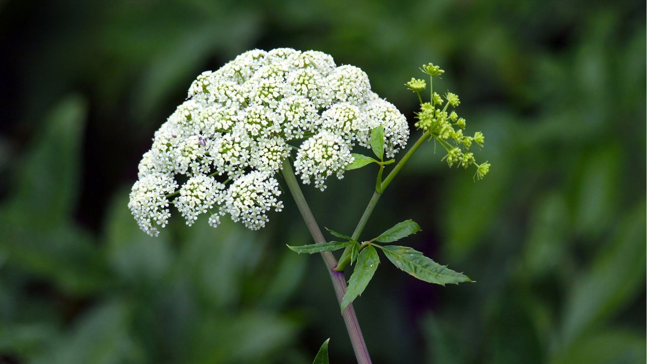 Often confused with poison hemlock, water hemlock is another extremely toxic plant that grows in wet, marshy areas. It has white umbrella-shaped flowers and hollow stems with purple streaks.