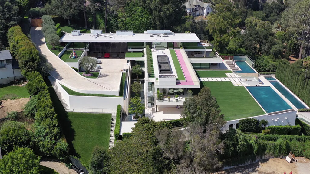 Palazzo di Amore isn’t owned by a celebrity—but it remains one of the largest and most expensive homes ever built in Beverly Hills. It offers 53,000 square feet of living space, including a 15,000‑square‑foot entertainment zone with a bowling alley, theater, discotheque, plus a wine vineyard, huge infinity pool, and room for 150 cars. Back in 2014, its price tag hovered at $195 million.