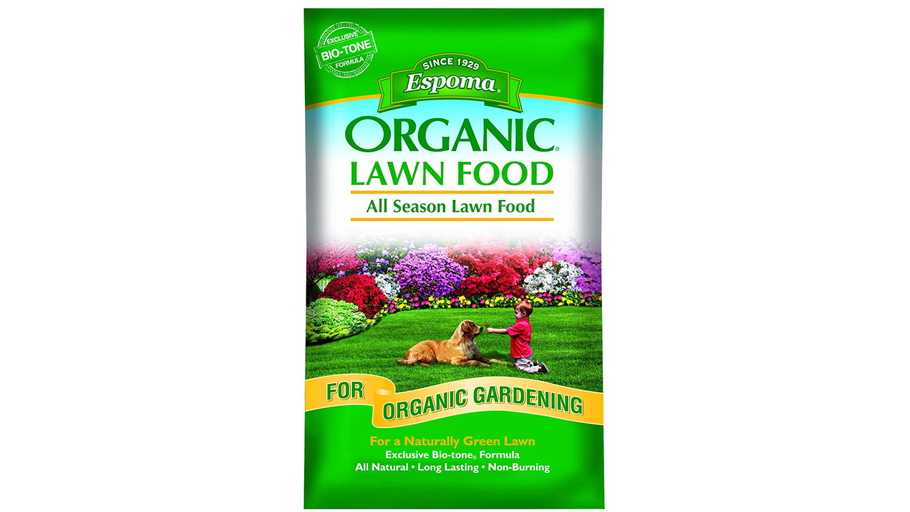 Kellogg’s organic lawn food is plant-based and fortified with beneficial microbes that help your soil retain nutrients longer. It’s made to be safe for kids and pets and can be applied directly to wet or dry lawns.