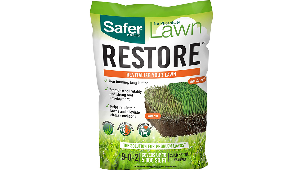 Safer Brand’s Lawn Restore delivers nitrogen, potassium, and iron through plant-based ingredients. It’s quick to green up your lawn while still being fully organic and safe for pets.