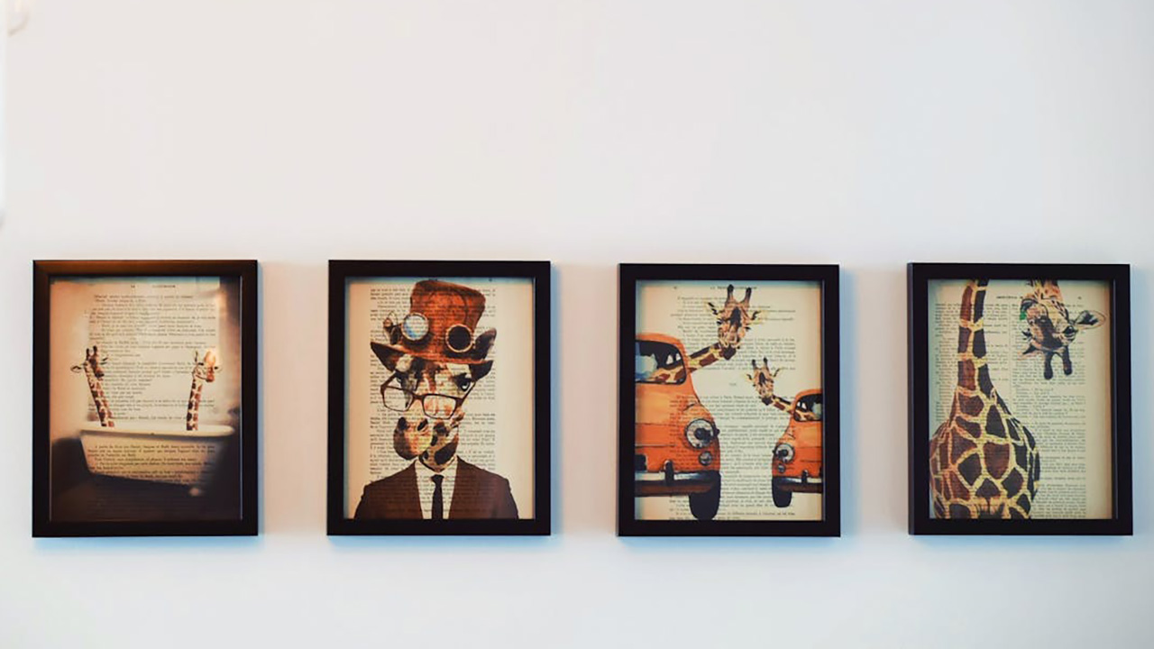 A 2×3 or 3×3 grid reads as a single rectangle, which calms a busy wall. Use matching frames and consistent spacing—think two inches all around.