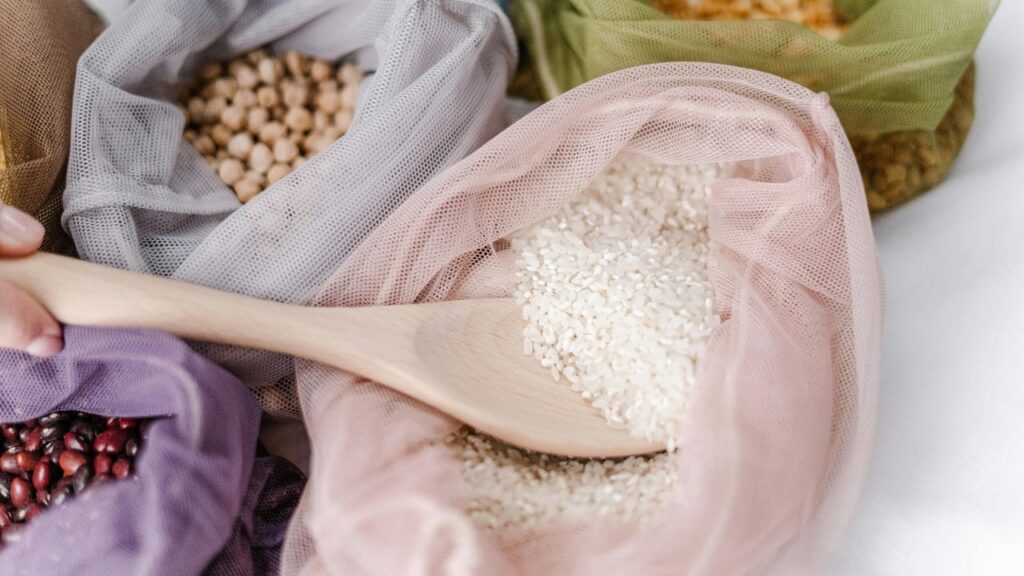 Aldi’s big bags of rice cost around $3, and cans of beans are usually under $1. Together, they create a base for dozens of meals.