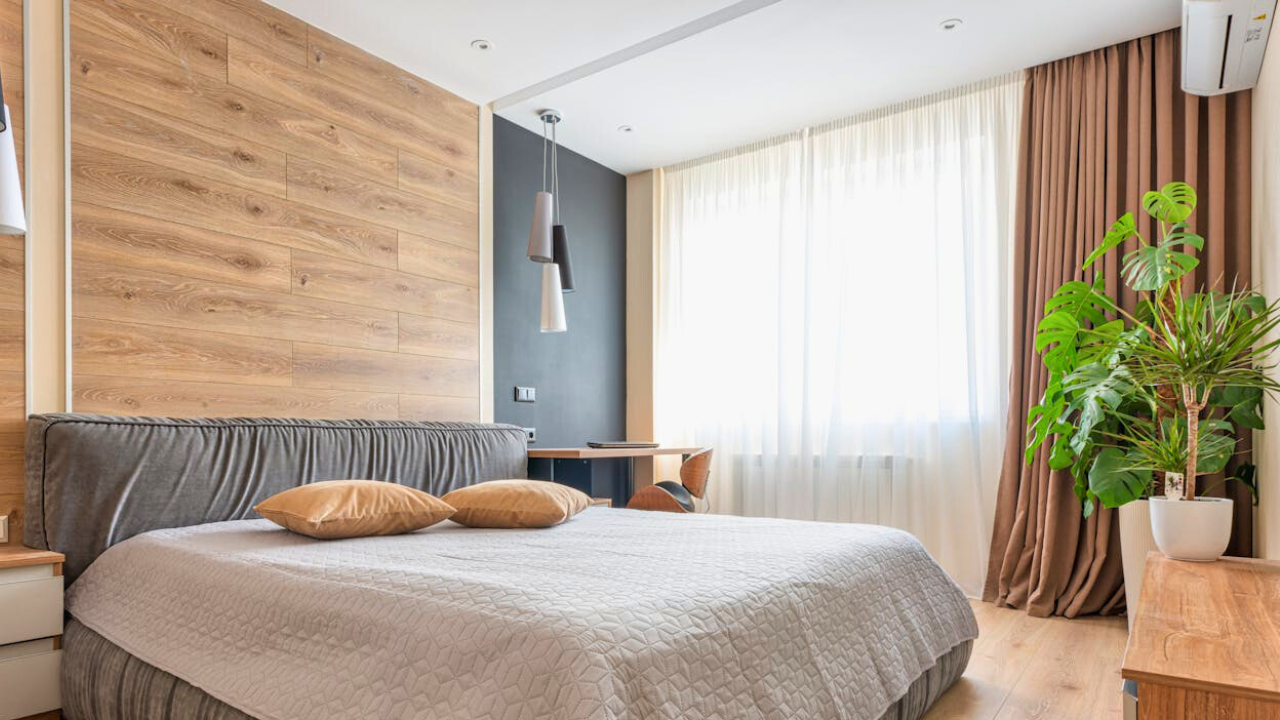 One piece above the headboard hung at the right height works better than a collage that climbs the ceiling. A mirror opposite a window doubles light and makes paint look richer. Keep colors simple—black and white or soft landscape prints calm a space that’s already busy with pillows and wood tones.