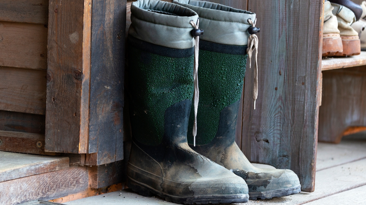 If it goes on after chores or ends up soaked, don’t drag it through the house. Hang it on the porch or store it in a bin right outside the door.