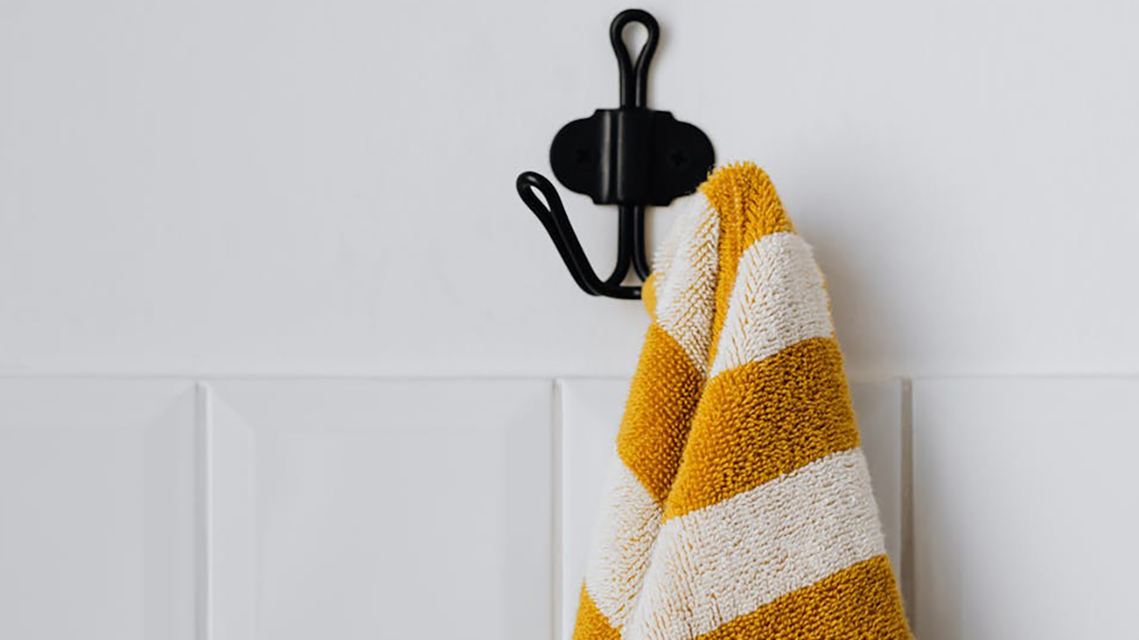 Hang a dedicated towel by the back door for drying off wet hands, wiping muddy paws, or cleaning up splashes from the kids. You’ll save your nicer towels from being ruined and cut down on the mess that ends up inside after chores or playtime.