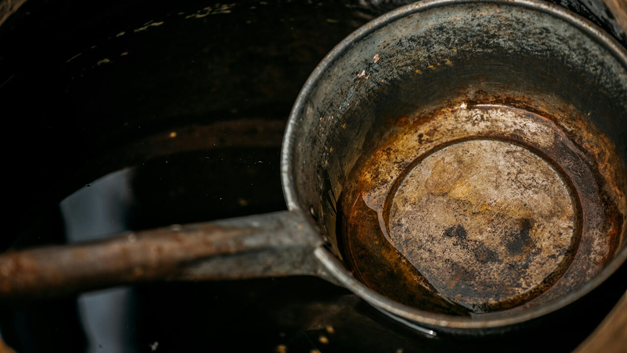 Even outside, grease hardens and sticks to the inside of the pipe. As soon as it cools, it starts collecting debris and slows down drainage. Over time, it can clog the whole line or back up into nearby fixtures. Scrape pans and dump grease in the trash instead.